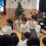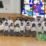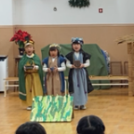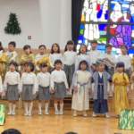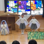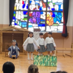 むかし、イエス様がベツレヘムの馬小屋でお生まれになった聖なる出来事を、年長組が賛美と言葉で『ページェント』としてあらわしました。