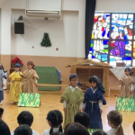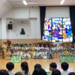 2025.12.19イエス様のお誕生をお祝いする『アドヴェント~待降節~』が、幼稚園では11月の終わりから始まりました。新しい週が来るたびに、ろうそくの灯りをつけていき、4本目のろうそくに灯りがともるとき、いよいよ『クリスマス礼拝』を守る日となります。