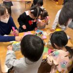 封筒人形を作っている時の、子どもたちのたくさんの《おしゃべり》がそれはそれは面白く。「これは、空をとぶの。」「海のいきものだよ。」「すごいきれいな音なの。」とそれはそれはイメージ豊かに、創作活動を楽しんでいました。